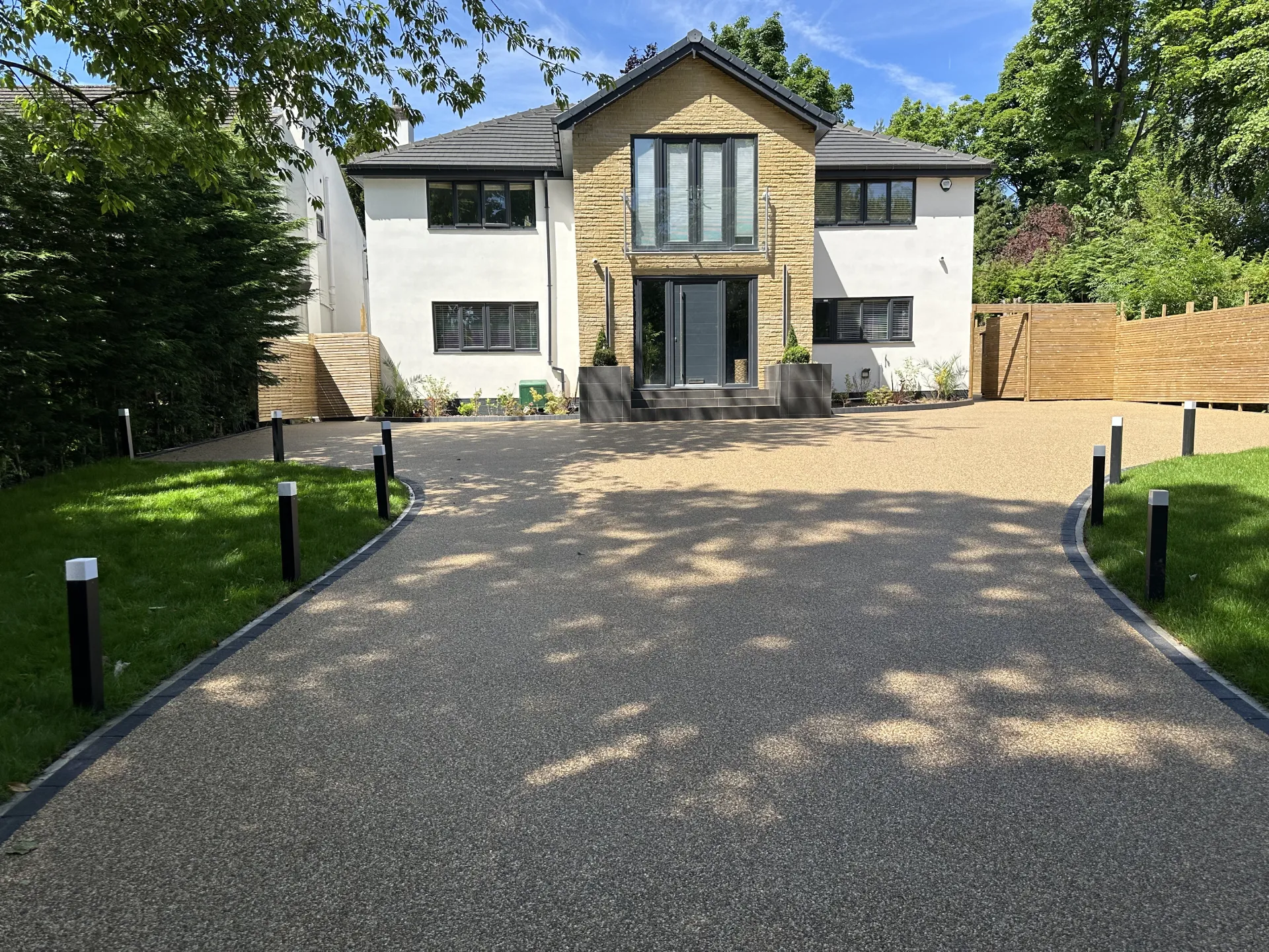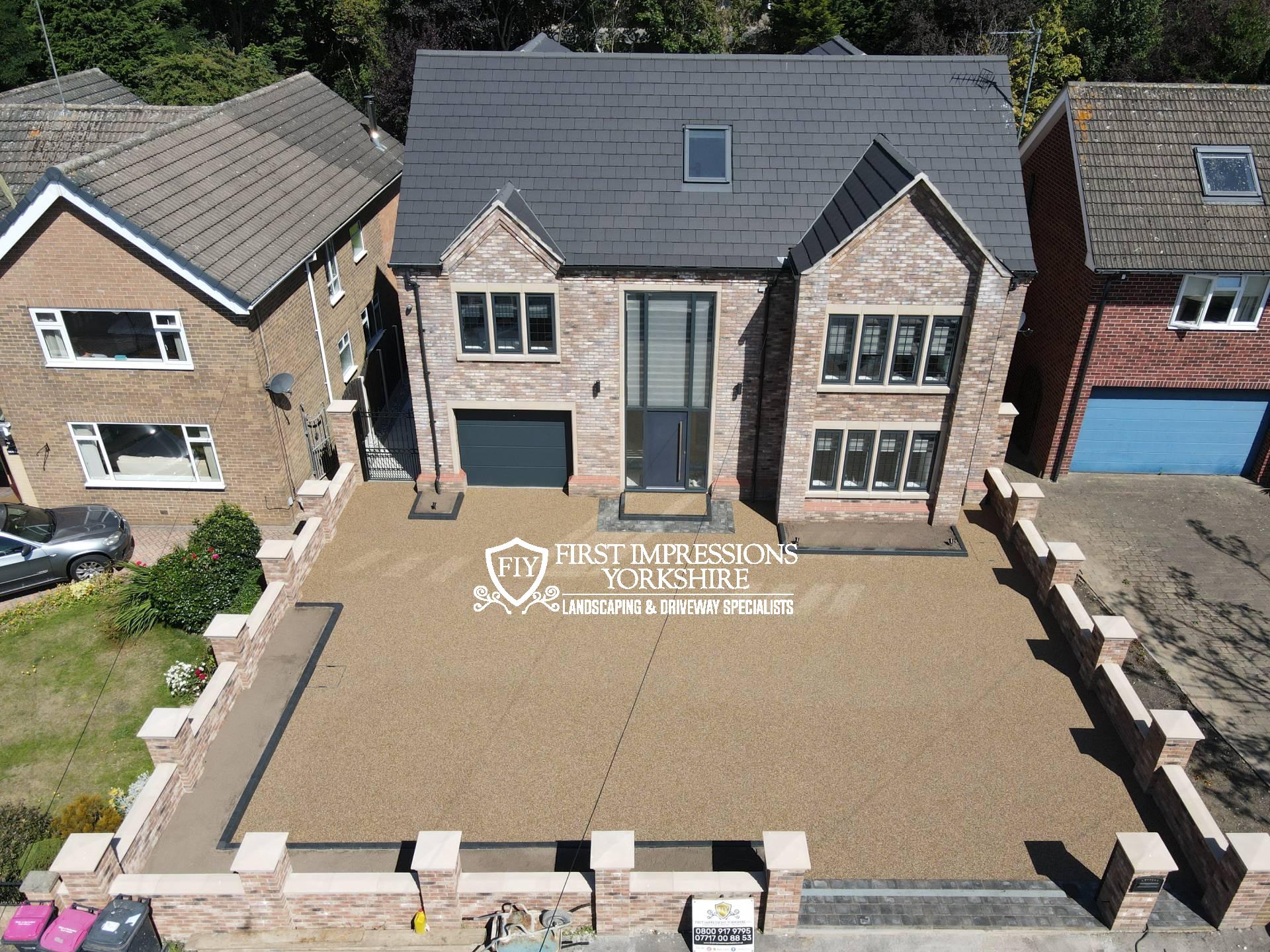 The first impressions Yorkshire team set to work with 270m of resin driveway paths and patio 35m of block paved entrance, fully landscaped throughout and finished off with lush new lawn what an incredible transformation.