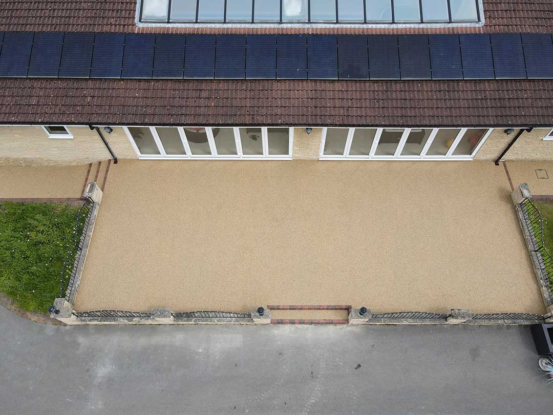 The 885m of new patios were finished off with our UVR stable resin binder in a blend we call spring time, giving a superb finish.