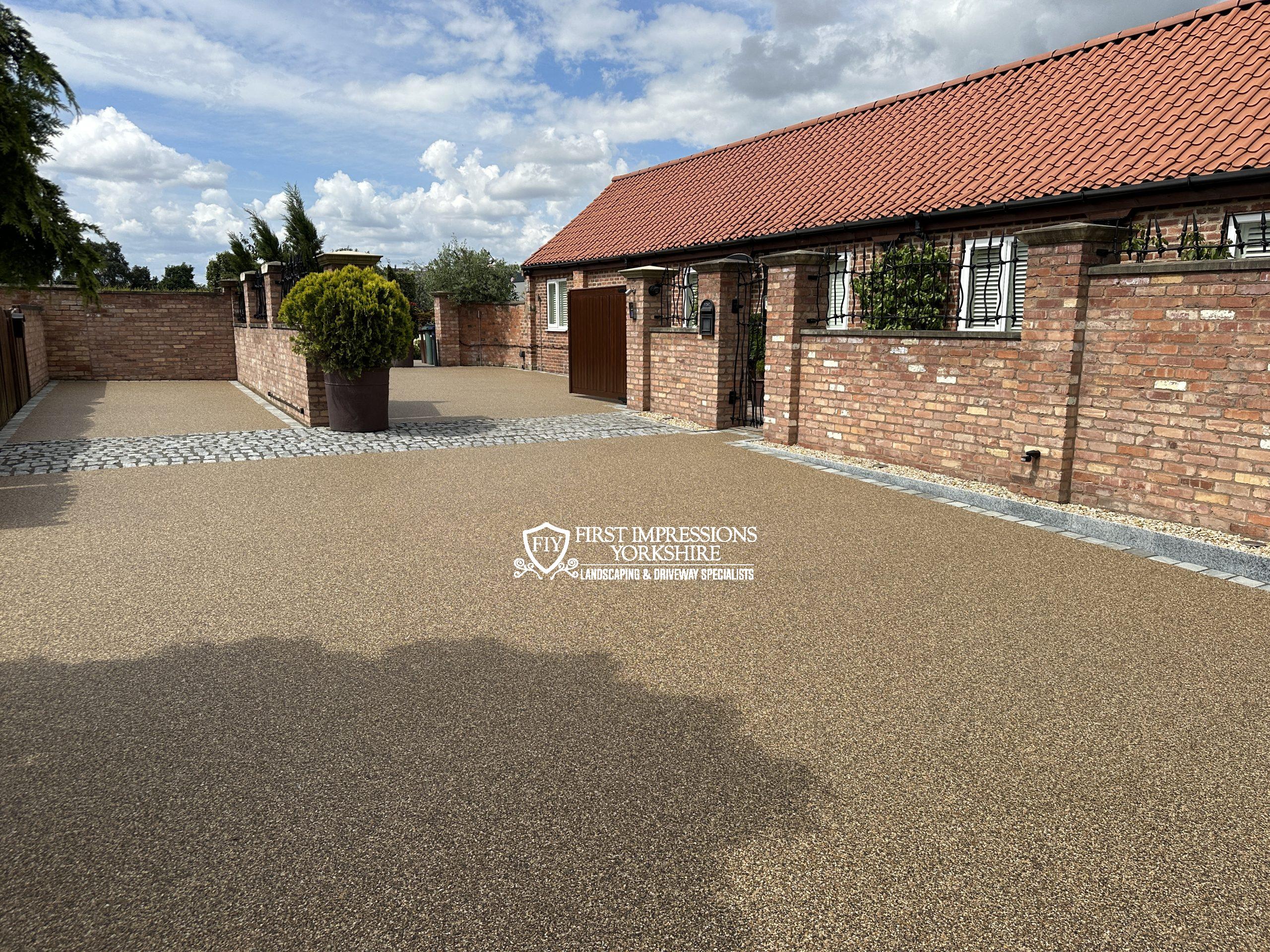 This stunning countryside property was ready for an uplift. The client was set on a new permeable low maintenance resin bound driveway system but wanted to add a hint of traditional in keeping with the countryside feel.